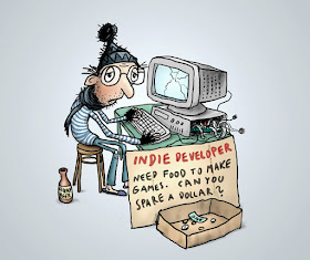 | I was curious what the first Google Image Search hit for "indie game developer" would be. (Source article, which is worth reading.) |